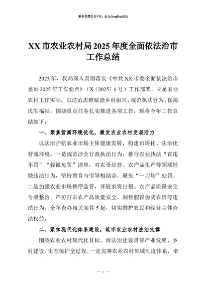 【七哥公文】2026年:XX市农业农村局2025年度全面依法治市工作总结_副本+更多免费公文+VX:QiGeGongWen2024