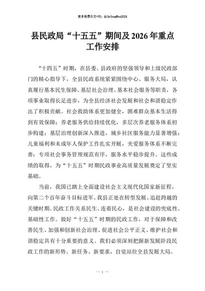 【七哥公文】2026年:县民政局“十五五”期间及2026年重点工作安排_副本+更多免费公文+VX:QiGeGongWen2024