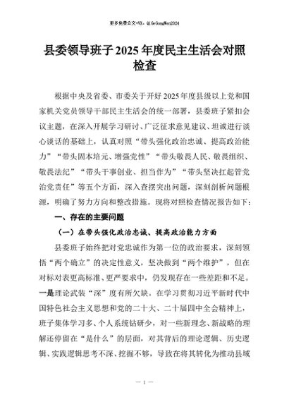 / 【七哥公文】2026年:县委领导班子2025年度民主生活会对照检查_副本+更多免费公文+VX:QiGeGongWen2024