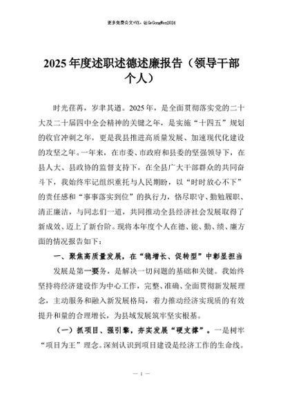 【七哥公文】2026年:2025年度述职述德述廉报告(领导干部个人)_副本+更多免费公文+VX:QiGeGongWen2024