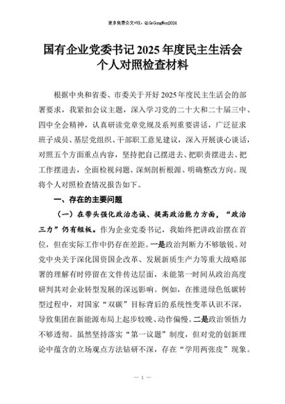 【七哥公文】2026年:国有企业党委书记2025年度民主生活会个人对照检查材料_副本+更多免费公文+VX:QiGeGongWen2024