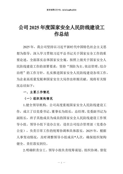 【七哥公文】2026年:公司2025年度国家安全人民防线建设工作总结_副本+更多免费公文+VX:QiGeGongWen2024