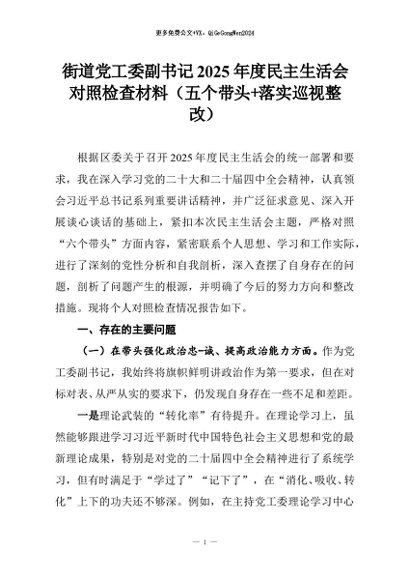 【七哥公文】2026年:党组书记2025年度民主生活会个人对照检查材料(五个带头)_副本+更多免费公文+VX:QiGeGongWen2024
