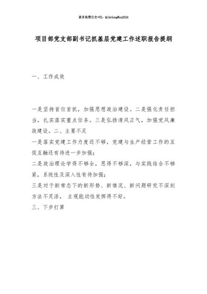 【七哥公文】2026年:项目部党支部副书记抓基层党建工作述职报告提纲_副本+更多免费公文+VX:QiGeGongWen2024