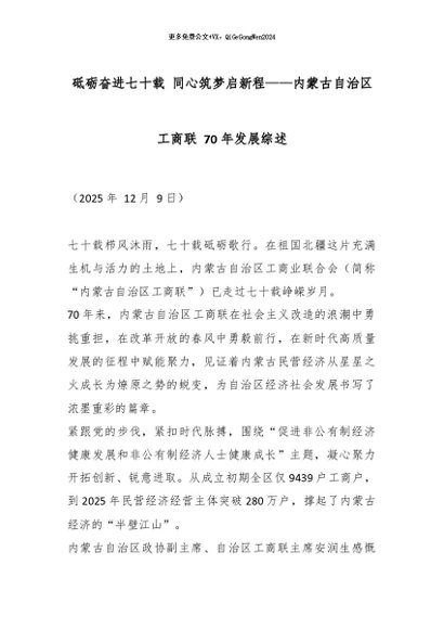 【七哥公文】2026年:砥砺奋进七十载 同心筑梦启新程——内蒙古自治区工商联 70 年发展综述_副本+更多免费公文+VX:QiGeGongWen2024