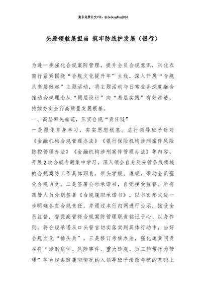 / 【七哥公文】2026年:头雁领航展担当 筑牢防线护发展(银行)_副本+更多免费公文+VX:QiGeGongWen2024