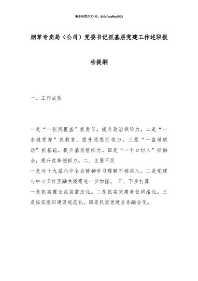 【七哥公文】2026年:烟草专卖局(公司)党委书记抓基层党建工作述职报告提纲_副本+更多免费公文+VX:QiGeGongWen2024