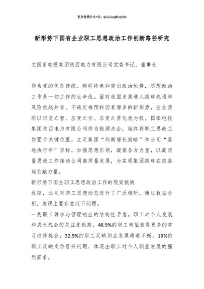 【七哥公文】2026年:新形势下国有企业职工思想政治工作创新路径研究_副本+更多免费公文+VX:QiGeGongWen2024