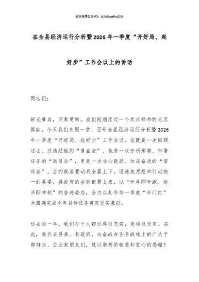 【七哥公文】2026年:在全县经济运行分析暨2026年一季度“开好局、起好步”工作会议上的讲话_副本+更多免费公文+VX:QiGeGongWen2024