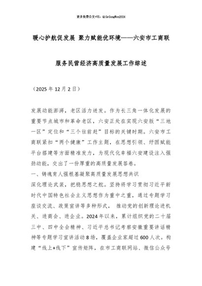 【七哥公文】2026年:暖心护航促发展 聚力赋能优环境——六安市工商联服务民营经济高质量发展工作综述_副本+更多免费公文+VX:QiGeGongWen2024