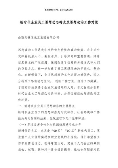 【七哥公文】2026年:新时代企业员工思想动态特点及思想政治工作对策_副本+更多免费公文+VX:QiGeGongWen2024