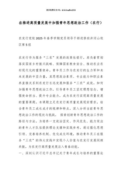 【七哥公文】2026年:在推进高质量发展中加强青年思想政治工作(农行)_副本+更多免费公文+VX:QiGeGongWen2024