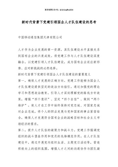 【七哥公文】2026年:新时代背景下党建引领国企人才队伍建设的思考_副本+更多免费公文+VX:QiGeGongWen2024