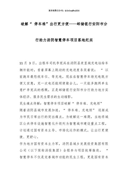 【七哥公文】2026年:破解“ 停车难”出行更方便——邮储银行安阳市分行助力汤阴智慧停车项目落地纪实_副本+更多免费公文+VX:QiGeGongWen2024