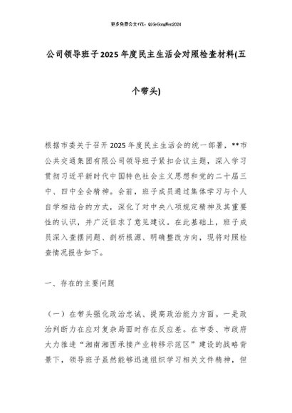 【七哥公文】2026年:公司领导班子2025年度民主生活会对照检查材料(五个带头)_副本+更多免费公文+VX:QiGeGongWen2024
