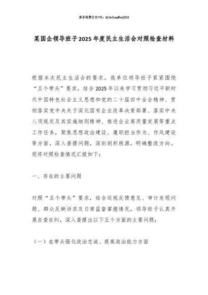 【七哥公文】2026年:某国企领导班子2025年度民主生活会对照检查材料_副本+更多免费公文+VX:QiGeGongWen2024