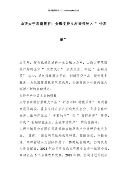【七哥公文】2026年:山西大宁农商银行:金融支持乡村振兴驶入“ 快车道”_副本+更多免费公文+VX:QiGeGongWen2024