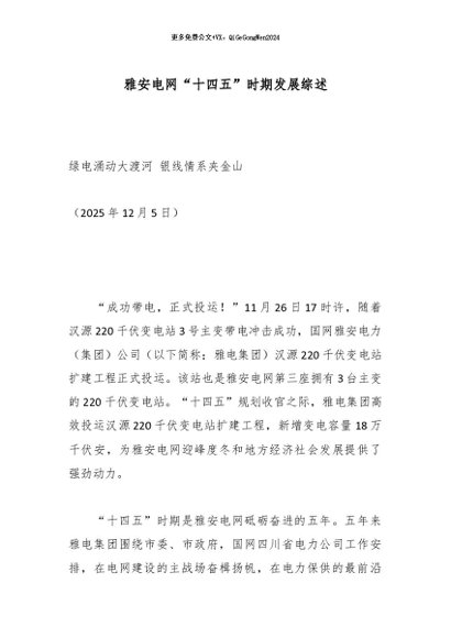 / 【七哥公文】2026年:雅安电网“十四五”时期发展综述_副本+更多免费公文+VX:QiGeGongWen2024