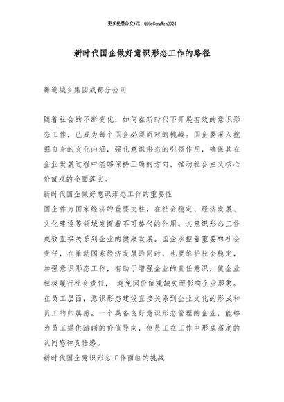 / 【七哥公文】2026年:新时代国企做好意识形态工作的路径_副本+更多免费公文+VX:QiGeGongWen2024