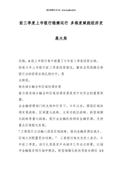 【七哥公文】2026年:前三季度上市银行稳健运行 多维度赋能经济发展大局_副本+更多免费公文+VX:QiGeGongWen2024