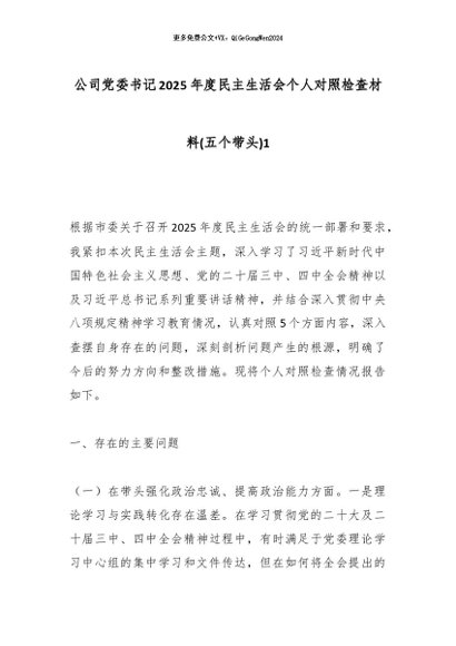 【七哥公文】2026年:公司党委书记2025年度民主生活会个人对照检查材料(五个带头)1_副本+更多免费公文+VX:QiGeGongWen2024