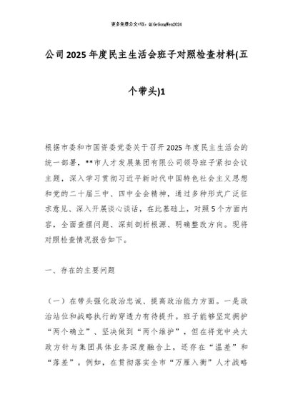 【七哥公文】2026年:公司2025年度民主生活会班子对照检查材料(五个带头)_副本+更多免费公文+VX:QiGeGongWen2024