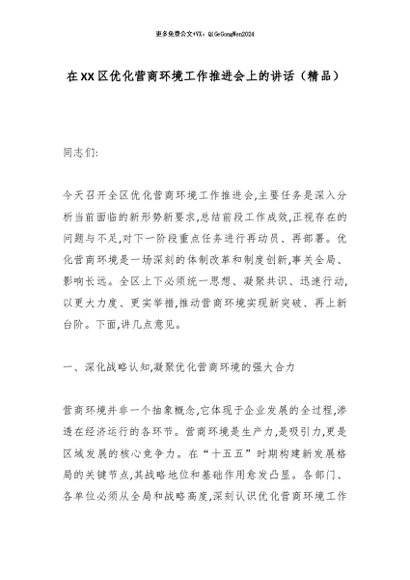 【七哥公文】2026年:在XX区优化营商环境工作推进会上的讲话(精品)_副本+更多免费公文+VX:QiGeGongWen2024