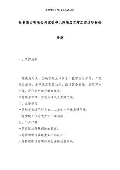 【七哥公文】2026年:投资集团有限公司党委书记抓基层党建工作述职报告提纲_副本+更多免费公文+VX:QiGeGongWen2024