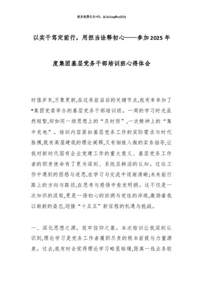 【七哥公文】2026年:以实干笃定前行,用担当诠释初心——参加2025年度集团基层党务干部培训班心得体会_副本+更多免费公文+VX:QiGeGongWen2024