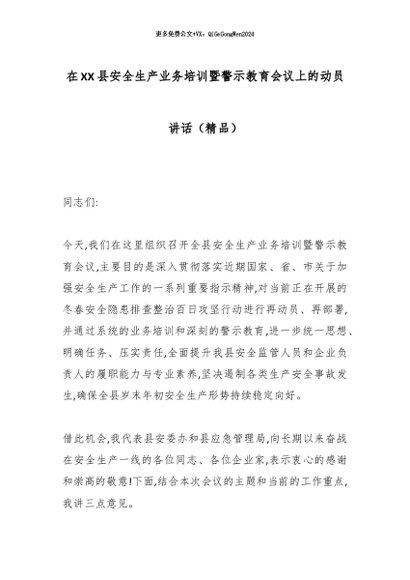 【七哥公文】2026年:在XX县安全生产业务培训暨警示教育会议上的动员讲话(精品)_副本+更多免费公文+VX:QiGeGongWen2024