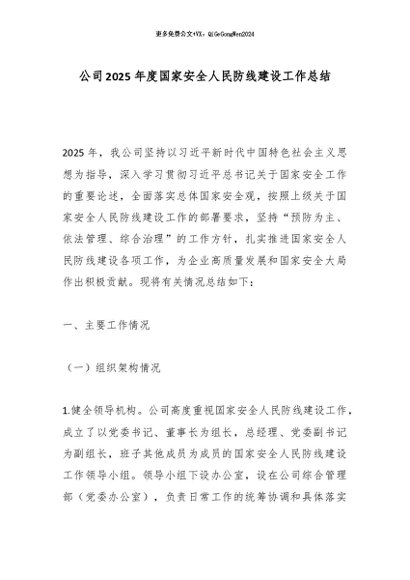 【七哥公文】2026年:公司2025年度国家安全人民防线建设工作总结_副本+更多免费公文+VX:QiGeGongWen2024