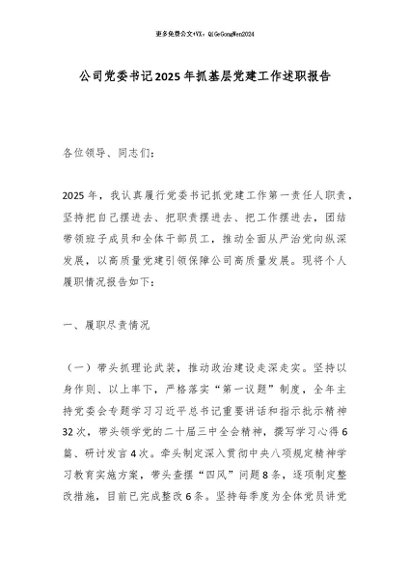 【七哥公文】2026年:公司党委书记2025年抓基层党建工作述职报告_副本+更多免费公文+VX:QiGeGongWen2024