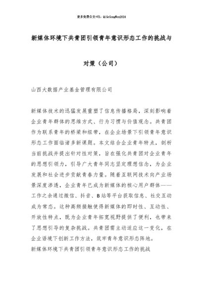 【七哥公文】2026年:新媒体环境下共青团引领青年意识形态工作的挑战与对策(公司)_副本+更多免费公文+VX:QiGeGongWen2024