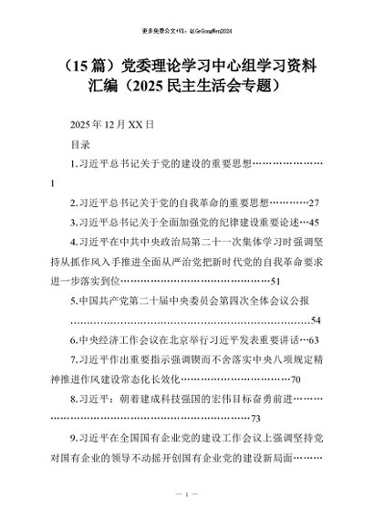 【七哥公文】2026年:(15篇)党委理论学习中心组学习资料汇编(2025民主生活会专题)+更多免费公文+VX:QiGeGongWen2024