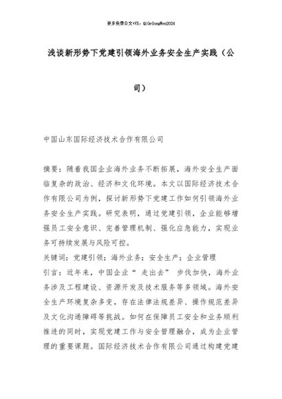 【七哥公文】2026年:浅谈新形势下党建引领海外业务安全生产实践(公司)_副本+更多免费公文+VX:QiGeGongWen2024