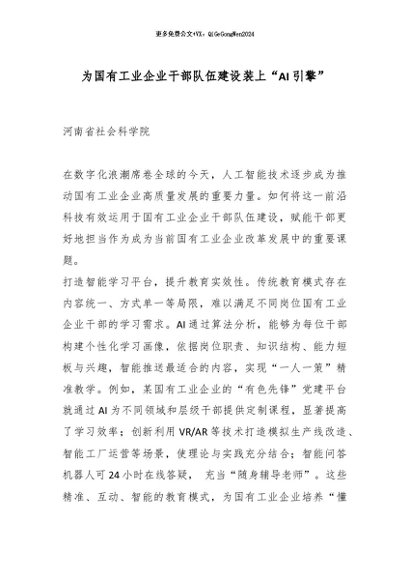 【七哥公文】2026年:为国有工业企业干部队伍建设装上“AI引擎”_副本+更多免费公文+VX:QiGeGongWen2024
