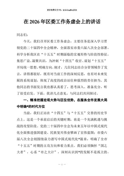 / 【七哥公文】2026年:在2026年区委工作务虚会上的讲话+更多免费公文+VX:QiGeGongWen2024