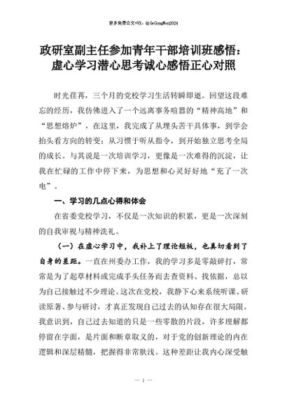 【七哥公文】2026年:政研室副主任参加青年干部培训班感悟:虚心学习潜心思考诚心感悟正心对照+更多免费公文+VX:QiGeGongWen2024