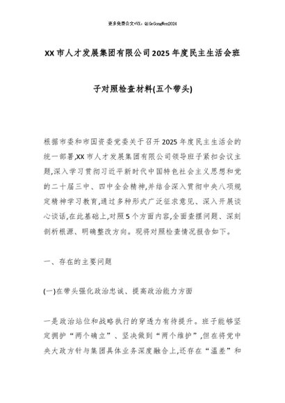 【七哥公文】2026年:XX市人才发展集团有限公司2025年度民主生活会班子对照检查材料(五个带头)_副本+更多免费公文+VX:QiGeGongWen2024