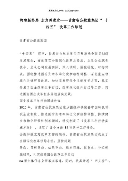 【七哥公文】2026年:构建新格局 加力再进发——甘肃省公航旅集团“ 十四五” 改革工作综述_副本+更多免费公文+VX:QiGeGongWen2024