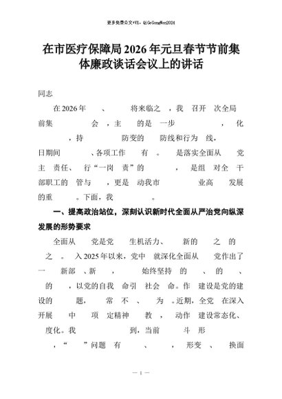 【七哥公文】2026年:在市医疗保障局2026年元旦春节节前集体廉政谈话会议上的讲话+更多免费公文+VX:QiGeGongWen2024