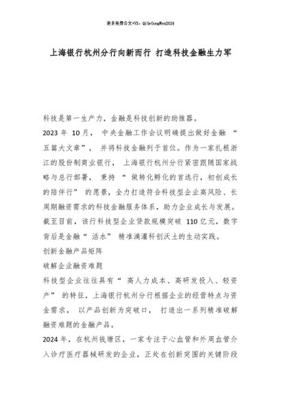 【七哥公文】2026年:上海银行杭州分行向新而行 打造科技金融生力军_副本+更多免费公文+VX:QiGeGongWen2024