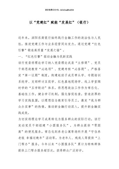 / 【七哥公文】2026年:以“党建红”赋能“发展红”(银行)_副本+更多免费公文+VX:QiGeGongWen2024