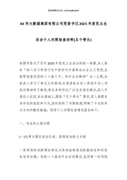【七哥公文】2026年:XX市大数据集团有限公司党委书记2025年度民主生活会个人对照检查材料(五个带头)_副本+更多免费公文+VX:QiGeGongWen2024