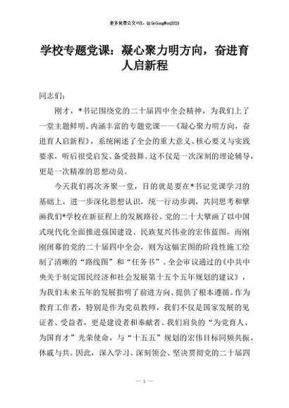 / 【七哥公文】2026年:学校专题党课:凝心聚力明方向,奋进育人启新程+更多免费公文+VX:QiGeGongWen2024