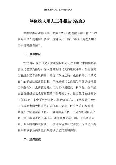 / 【七哥公文】2026年:单位选人用人工作报告(省直)+更多免费公文+VX:QiGeGongWen2024