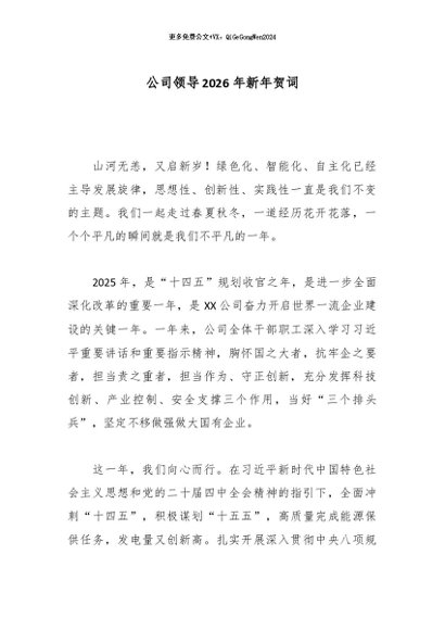 / 【七哥公文】2026年:公司领导2026年新年贺词_副本+更多免费公文+VX:QiGeGongWen2024