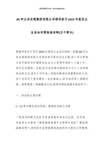【七哥公文】2026年:XX市公共交通集团有限公司领导班子2025年度民主生活会对照检查材料(五个带头)_副本+更多免费公文+VX:QiGeGongWen2024