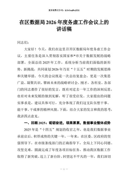 / 【七哥公文】2026年:在区数据局2026年度务虚工作会议上的讲话稿+更多免费公文+VX:QiGeGongWen2024