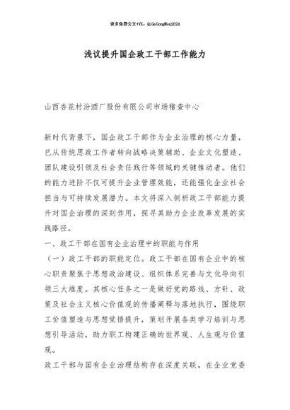 / 【七哥公文】2026年:浅议提升国企政工干部工作能力_副本+更多免费公文+VX:QiGeGongWen2024